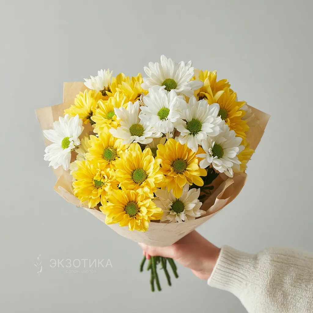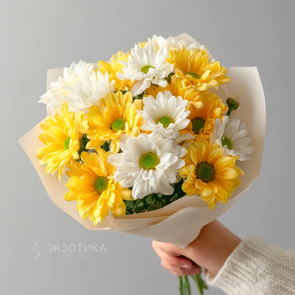 Монобукет из хризантем «Солнечное касание»