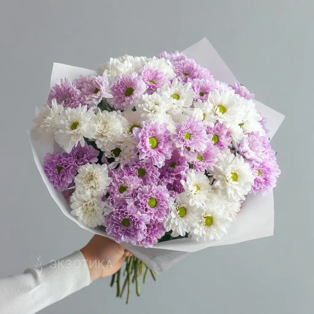 ГлавнаяКаталогБукетыМонобукет из хризантем «Нежный комплимент»