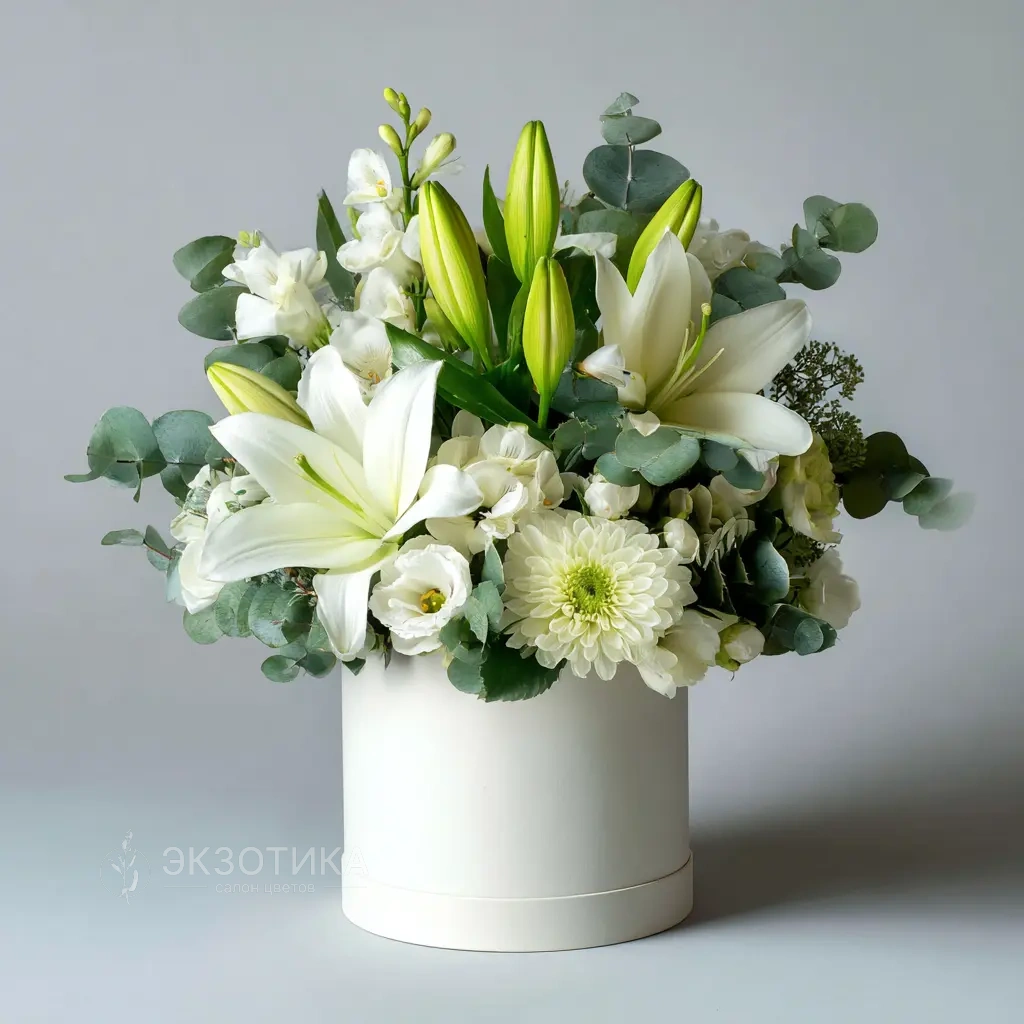 Лилии, фрезии и гербера создают ощущение свежести и бодрости, идеально для начала дня или приятного сюрприза.