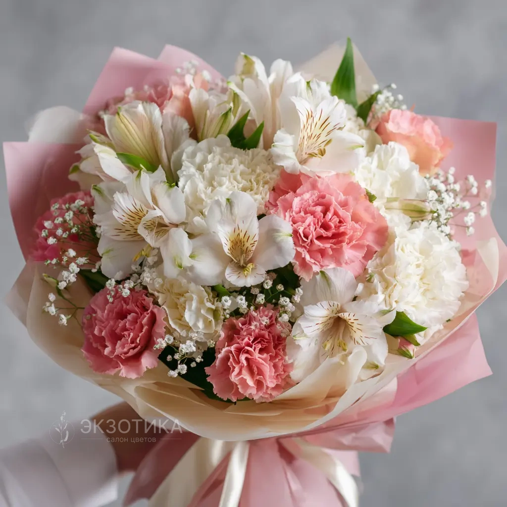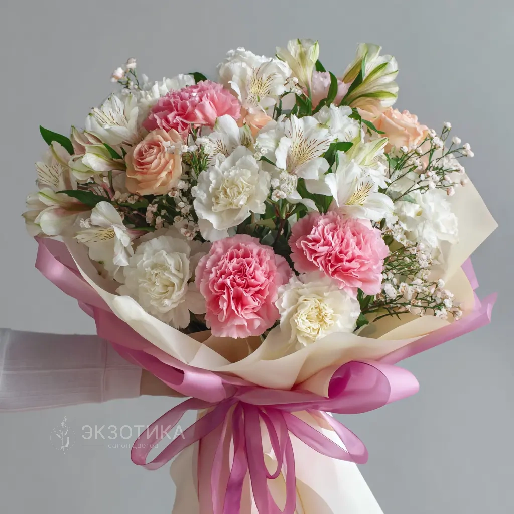 Непринуждённый и жизнерадостный букет для лёгкого комплимента. Альстромерии в игривых тонах отлично подойдут для молодёжной аудитории, подарков друзьям, коллегам и любимым.
