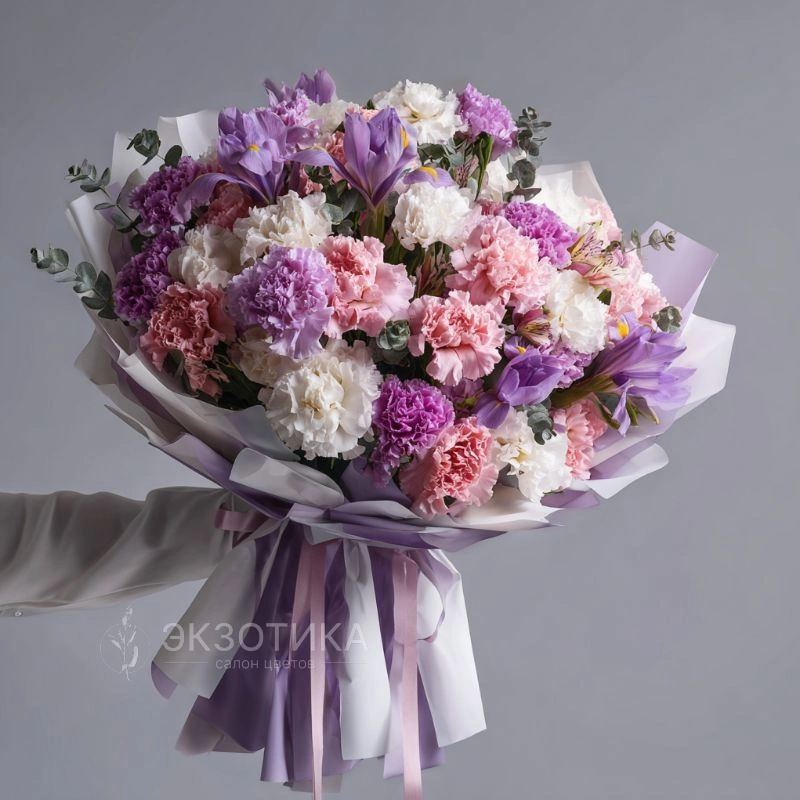 ГлавнаяКаталогБукетыБукет с гвоздиками «Гармония оттенков»