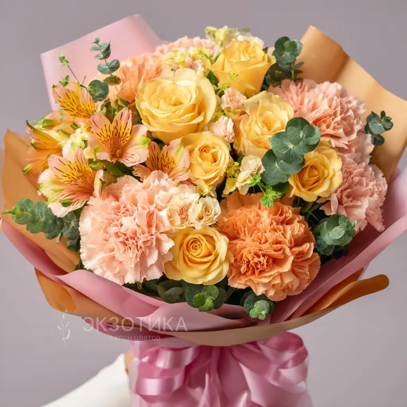 ГлавнаяКаталогБукетыБукет с гвоздиками «Солнечный закат»