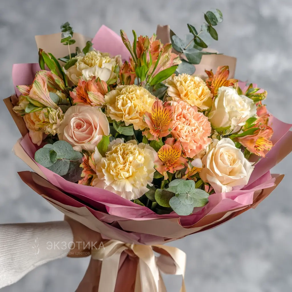 Букет с гвоздиками «Нежный румянец»