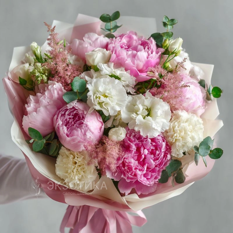 ГлавнаяКаталогБукетыБукет с пионами «Пудровая нега»