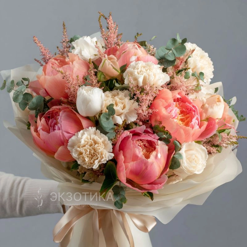ГлавнаяКаталогБукетыБукет с пионами «Медовый этюд»