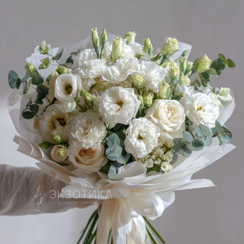 ГлавнаяКаталогБукетыБукет с эустомами «Светлая вуаль»