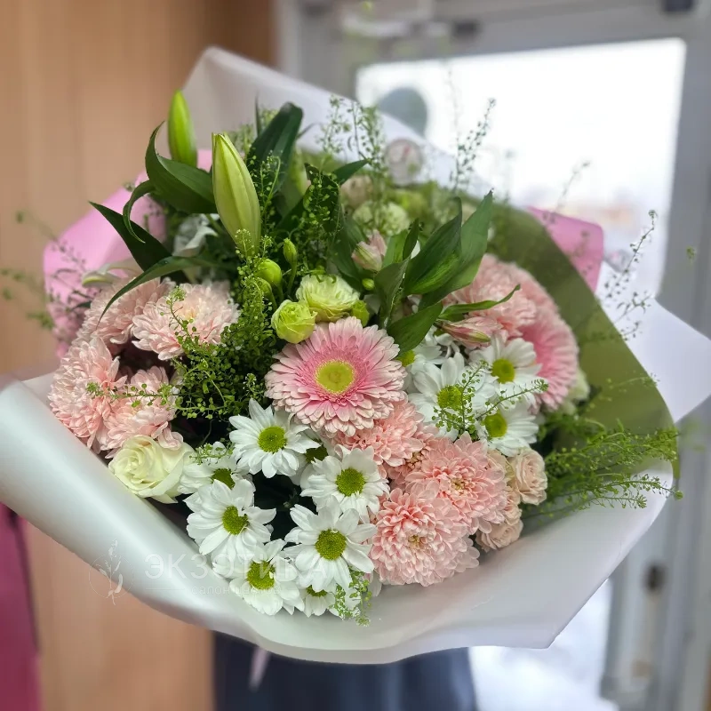 ГлавнаяКаталогБукетыБукет из лилии и хризантем «Аромат лета»