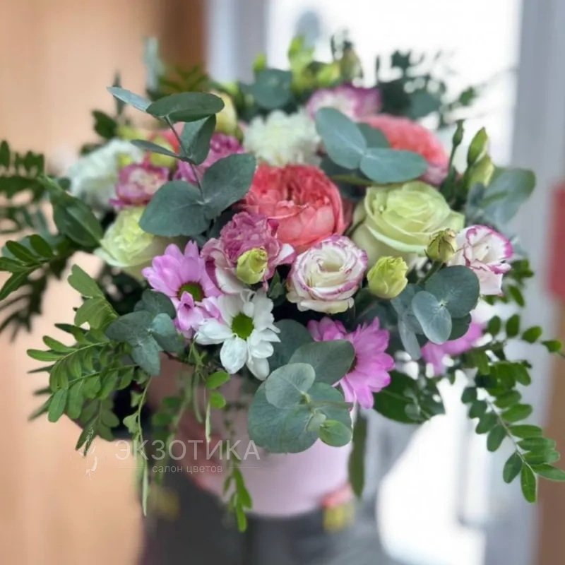 Погрузитесь в атмосферу нежности и свежести с нашим букетом «Райский запах». Элегантная коробочка украшена изысканным сочетанием эустомы и розы, создавая гармонию и уют. Дополняют композицию хризантема кустовая, эвкалипт и пистация, придавая ей яркости и уникальности. Этот букет идеально подойдет для подарка или украшения любого пространства. Создайте особенное настроение с «Райским запахом» уже сегодня!