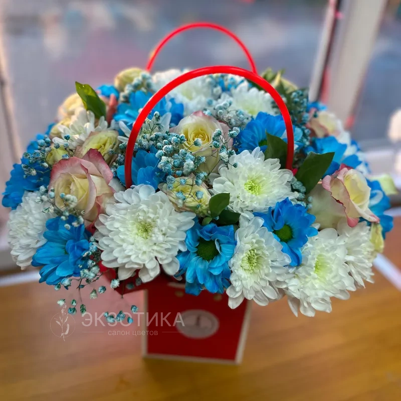Сумочка из роз и хризантемы кустовой «Легкий флирт»