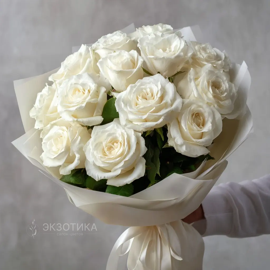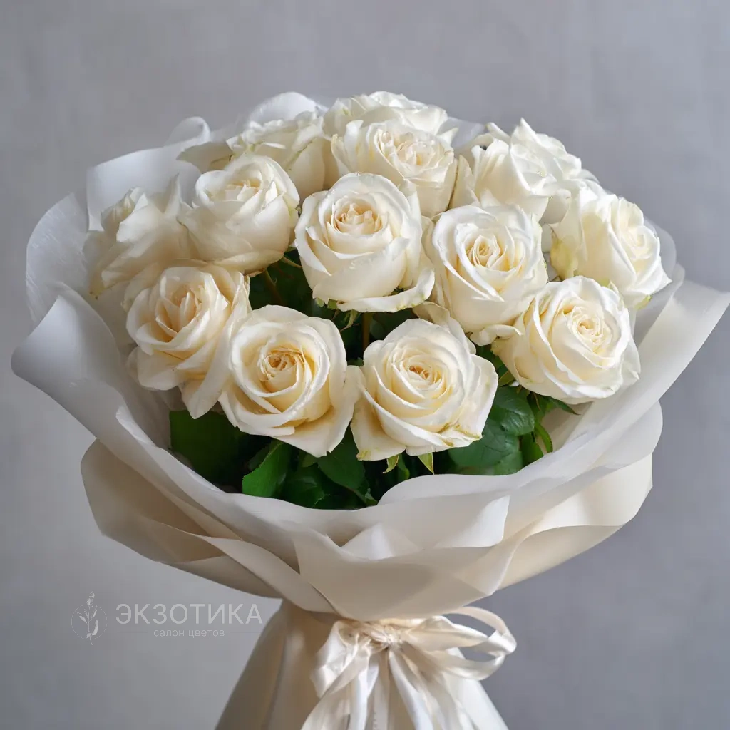 Стильный и торжественный букет из 15 белоснежных эквадорских роз высотой 50 см. Идеален для свадеб, юбилеев и других важных событий. Эквадорские розы — это крупные бутоны, насыщенный аромат и безупречная свежесть.