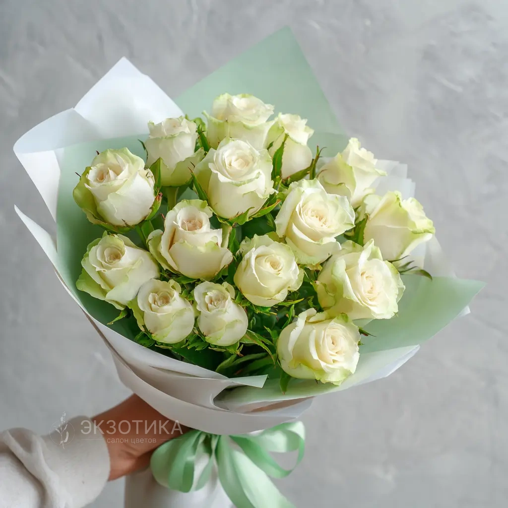 Сдержанный и лаконичный букет из 15 белых роз отечественного производства — выбор для тех, кто ценит натуральность и простоту. Подойдёт как для деловых случаев, так и для поздравлений близких.