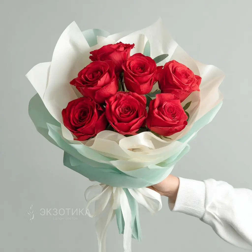 Букет с динамичным характером. Подходит для тех, кто любит впечатлять. Красные розы в воздушной упаковке — универсальное решение для праздника и признания.