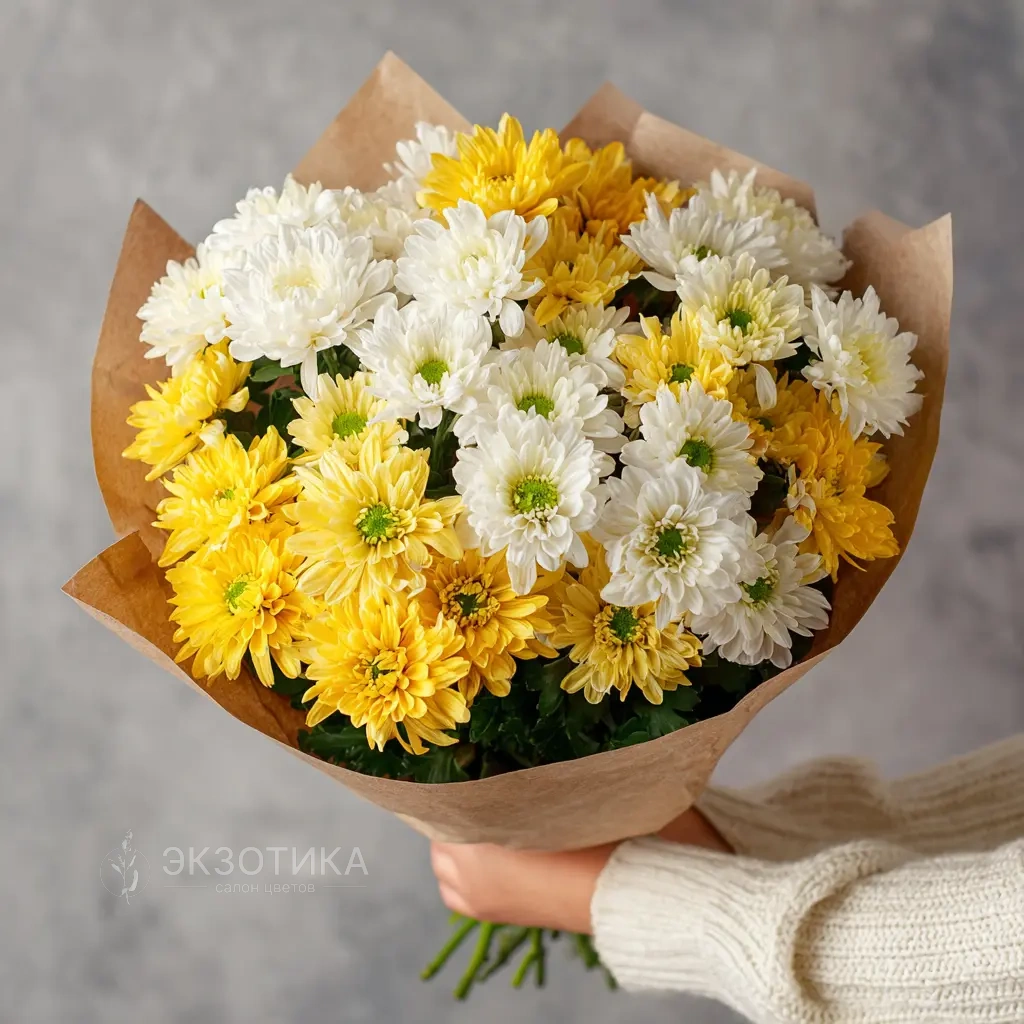 ГлавнаяКаталогБукетыМонобукет из хризантем «Подарок сентября»